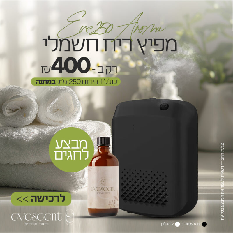 מפיץ ריח חשמלי EVE 200 + 2 ריחות לבחירה המחיר המקורי היה: 699.00 ₪.המחיר הנוכחי הוא: 599.00 ₪.